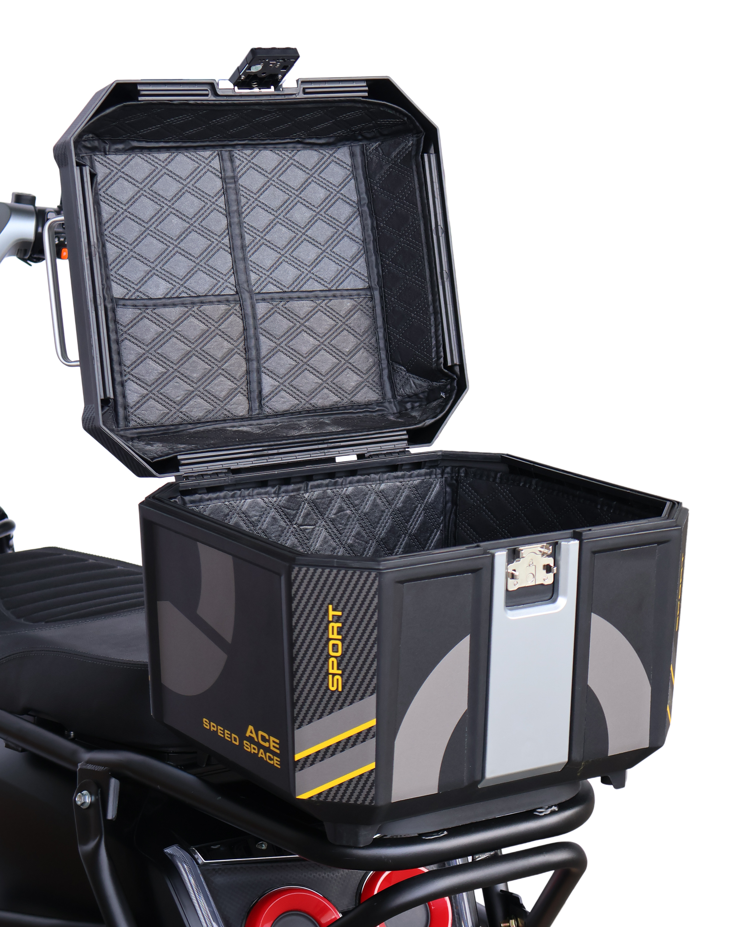 Півторакіловатний двигун і ємний графеновий акумулятор 72 В 38 А·год забезпечують власнику SUNRA K6 PRO збільшену тягову силу зі швидкістю 50 км/год і розширену дальність їзди на одному заряді – до 110 км. Функціональні деталі та продумані елементи зроблять поїздку не тільки приємною, але й безпечною. Система контролю зчеплення, дискові гальма, п'ятирівневе регулювання амортизації та бездоганна маневреність зроблять власника справжнім лідером на дорозі. Посилення металевою рамою по контурах корпусу убезпечить K6 PRO від випадкових падінь або аварій. Вантажний бокс в комплекті зі скутером.